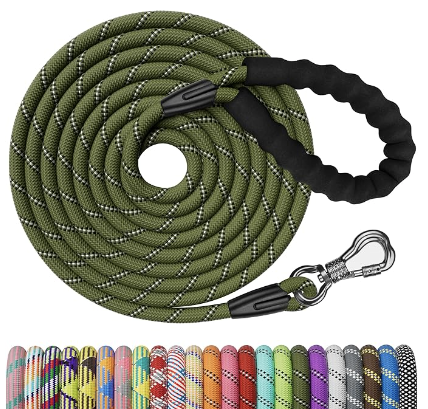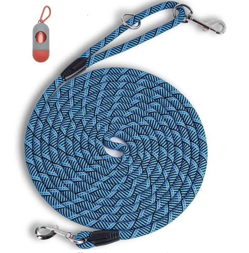 As you can see, I am not recommending a specific long leash, as there’s a multitude of them that are specific to different size dogs.